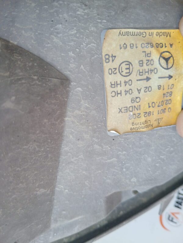 Disponibile fanale faro anteriore destro dx originale per Mercedes classe A W168, anni dal 1997 al 2004. Codici originali: 1305235593, 0301192202, A1686201861.
