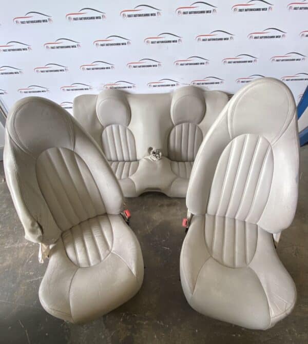Disponibile kit di sedili anteriori e posteriori originali in pelle colore beige, per Jaguar XK8 anni dal 1996 al 2002, in condizioni come da foto, con un sedile rovinato.